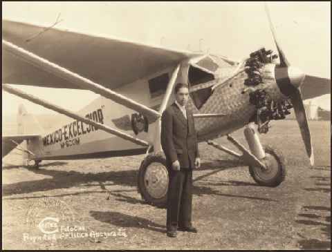 bordo del avión México Excelsior. Emilio Carranza, Rescued the "Quetzalcoatl" airplane, outfitted it with a 185 hp BMW engine, christened it the "Coahuila", and flew it non-stop from Mexico to Ciudad Juarez; he also flew from Mexico - Washington in the México Excelsior airplane. |