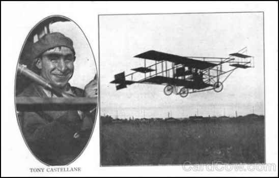 Daily Journal and Tribune "Elmira, N. Y., Sept 22. - "Dare Devil" Castellane, a Curtiss aviator, fell to instant death at the Mansfield, Pa., fair today. He had started in an exhibition flight and when three quarters of a mile from the grounds his machine careene, turned turtle and fell on a hillside. Castellane was found buried beneath the wreckage of his engine and plane. His wife witnessed the fall." Editor's Note: This article was found in the archives of the Daily Journal and Tribune by Bob Davis. I thank him for his initiative and for his generosity in sharing it with us on this website. |