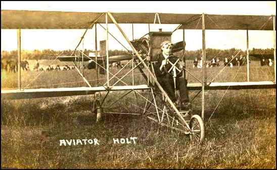 via email from Jerry Blanchard, 11-22-07 I stumbled upon some info on Mr Holt--His first name was Lester and he was at the Cicero Aviation Meet in 1912. I Found him on Carroll Grays' website while I was looking for something else. He also lists Mickey McGuire and gives his real proper first name was Newell M. McGuire.. Jerry |