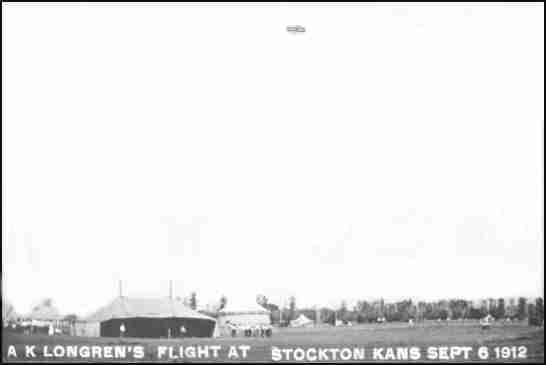 This is the fifth plane built by Leonardville native Albin K. Longren, flown by him for one year and then sold to Philip Billard, a Topeka native who was killed in France while testing planes for the Allies in World War I. Longren, with the assistance of his brother, E. J., and William Janicke, built an airplane in Topeka which was taken to a field southeast of the city for testing. On September 2, 1911, with Longren behind the wheel, it became the first Kansas-made plane to successfully take to the air. (Wilbur and Orville Wright's famous flight was on December 17, 1903, at Kitty Hawk, North Carolina.) Editor's Note: These three introductory paragraphs were kindly provided by the Kansas State Historical Society. For the rest of the story, and for viewing three photos; the Longren biplane, his Topeka shop and he and his wife, just click on: You may also wish to visit the homepage of the Society by clicking on: |