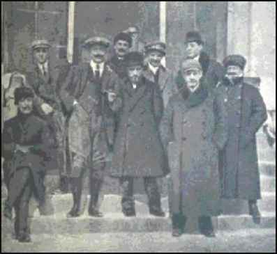 (tratta da "Pionieri dell’aviazione in Italia" di Mario Bianchi) Visit to Montichiari (BS) in anticipation of the Aerial Circuit of September 1909. From the left to right: the Osiman Muzio Gallo, the third person being Riccardo Ponzelli. (From "Pionieri dell'aviazione in Italia" by Mario Bianchi) Courtesy of Giovanni Giorgetti, 11-28-05 |