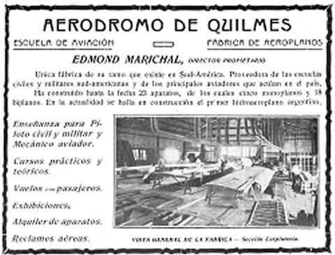 El 2 de febrero de inauguró en Quilmes la Escuela de vuelo y talleres del constructor de aviones Edmond Marichal donde hoy se encuentra el Taller Regional de la Fuerza Aérea. Sus instalaciones contaban con un excelente campo de Aviación a orillas del río, amplios hangares y una instalación de habitaciones paira los alumnos que quieran vivir allí, como asimismo un bar y restaurante, comedores, etc. y se podía llegar rápidamente gracias al transporte brindado por tranvías y ferrocarril. El acto oficial se realizó el día 5 y el personal de profesores estuvo integrado por Albert Jarfelt, Francisco Sánchez con el cargo de jefe piloto de la escuela (febrero a mayo 12 ), y finalmente Pedro A. Garré. Con sus alumnos voló a diario sobre la cuidad y el balneario. Ha hecho asimismo pequeños viajes por los pueblos aledaños.