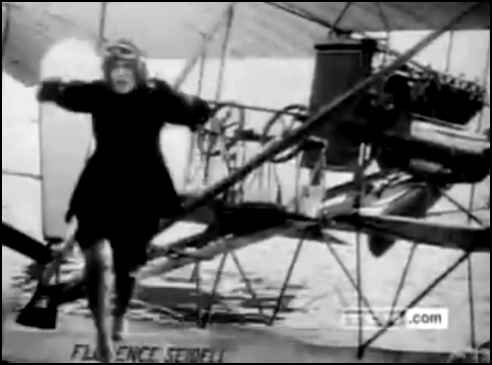 Hello,via email from Marcus Brooks, 6-27-11 I came across your Florence Seidell page after seeing her name on the side of a seaplane in a short feature on Turner Classic Movies. The short was a one-reeler called _Goofy Movies Number Three_: one of an MGM series that features old silent footage re-edited and voiced over with snide commentary by Pete Smith. In this case the footage seems to include film from 1914's _The Mistress of the Air_, with several good views of Mrs. Seidell and her seaplane (which looks like a rather fancy V-8 powered Curtiss). One scene shows what looks like Seidell's plane in the water (although the actual crash footage is of a very different plane). This might be from the near-fatal incident mentioned on your site. I've attached a couple of screen shot examples. These are almost certainly of Mrs. Seidell. If I'm correct about the original movie, the actor shown is Jack Conway. |