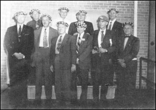 | The ten Early Birds that gathered for the plaque dedication at Decatur were (left to right) Dave Young, Sinnie Sinclair, George Page, Charles F. Willard, Roderick Wright (rear), William Hetlick, George Scragg (rear), William Denehie, Joseph Pallissard, and Art Hartman. |