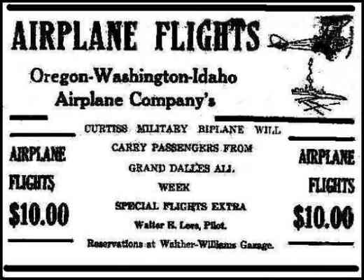 Barnstorming 1919-1923 Walter worked for the Oregon, Washington & Idaho Airplane Company. Vic Vernon was the chief pilot. They had Curtiss Jennys (JN-4s), Oriole land planes, and Curtiss F and M-F Flying Boats. Walter flew both land planes and boats to The Dalles, Oregon, and land planes to Pendleton, mostly carrying passengers.      In the fall of 1922, Walter went with Johnson Aeroplane and Supply Company, located in Dayton, Ohio. He worked with Al Johnson and his good friend from the Curtiss flying school in San Diego, Jimmy Johnson. Al and Jimmy were not related. |